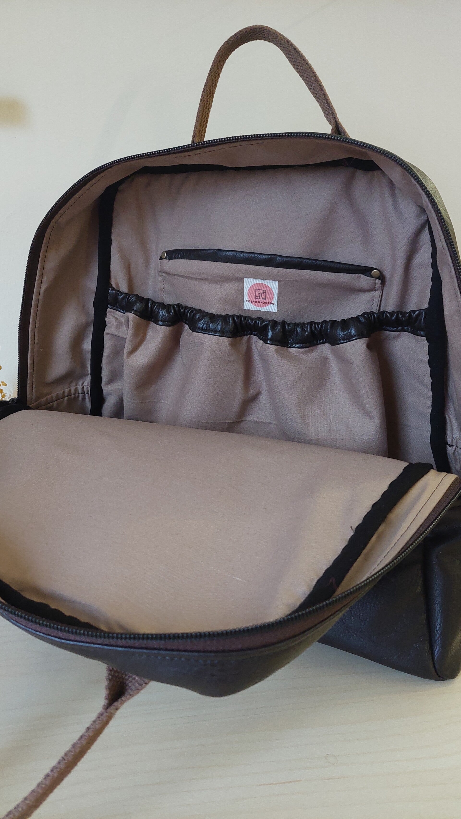 Deze rugzak is gemaakt met kunstleer en zeer stevige twill.